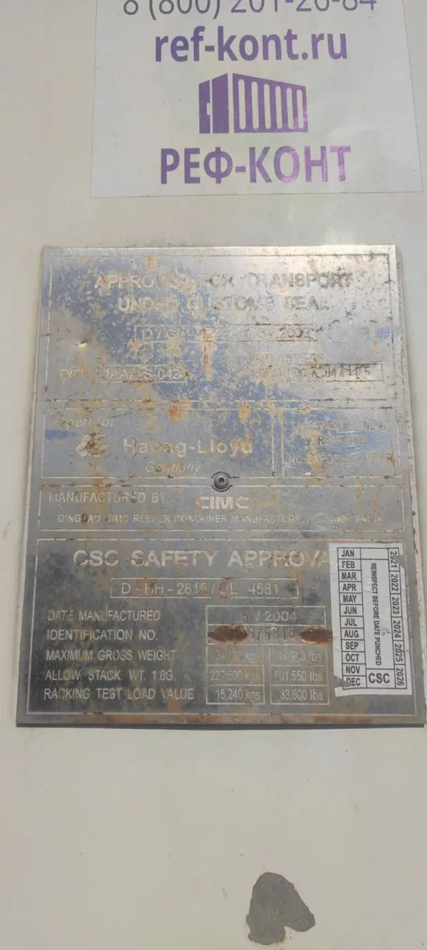 Размер рефрижераторного контейнера: 40 футов
